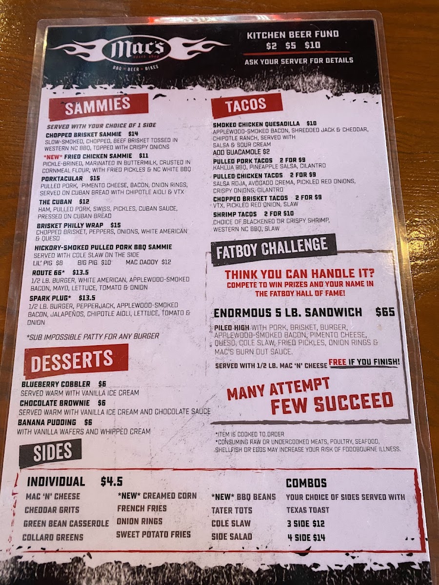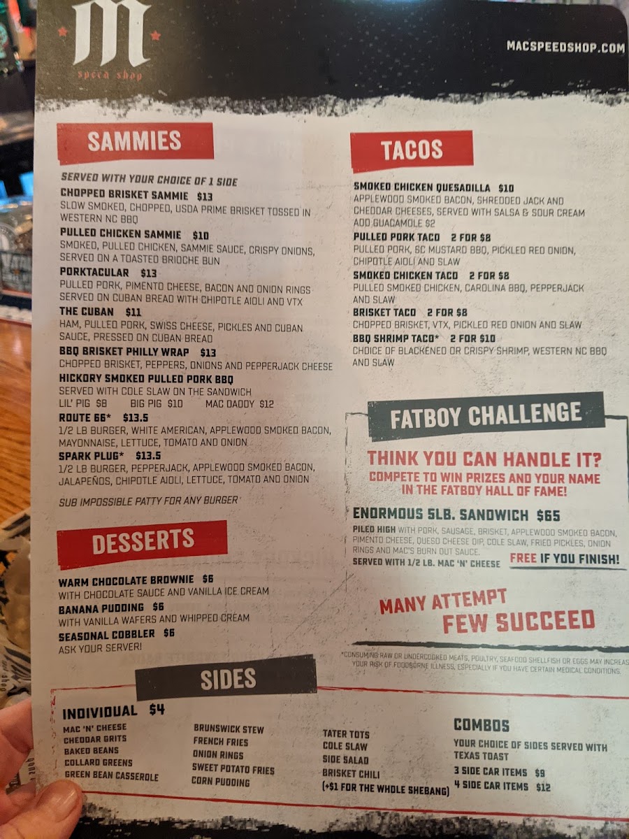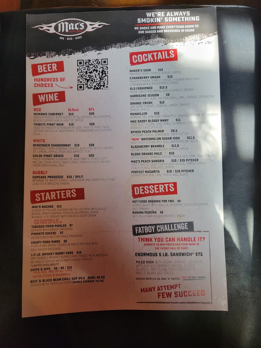 Mac's Speed Shop Menu (2025 Update)