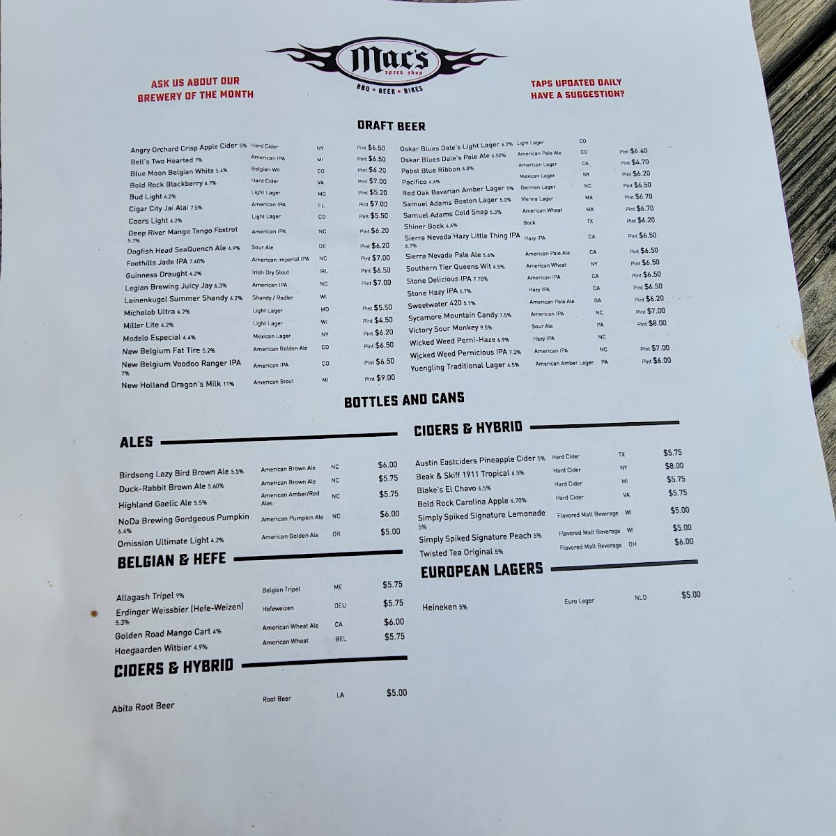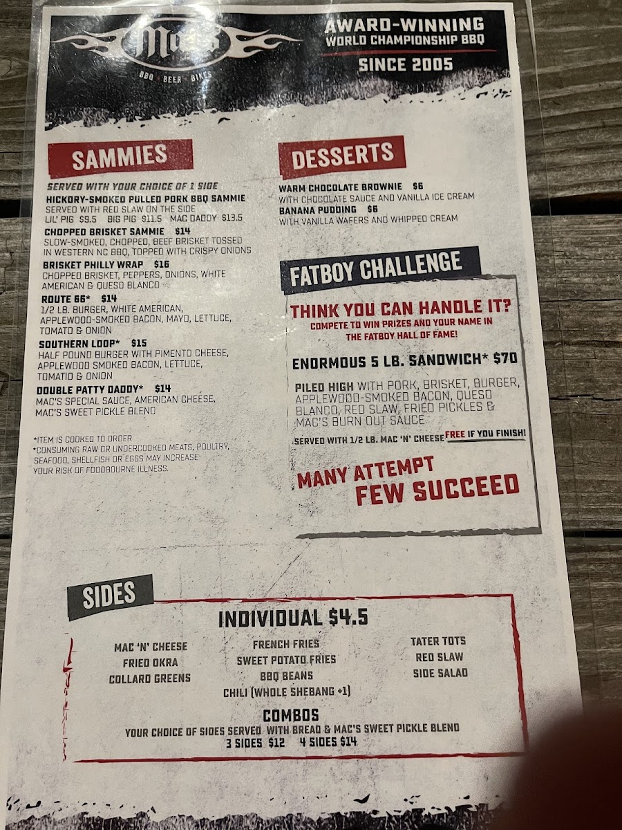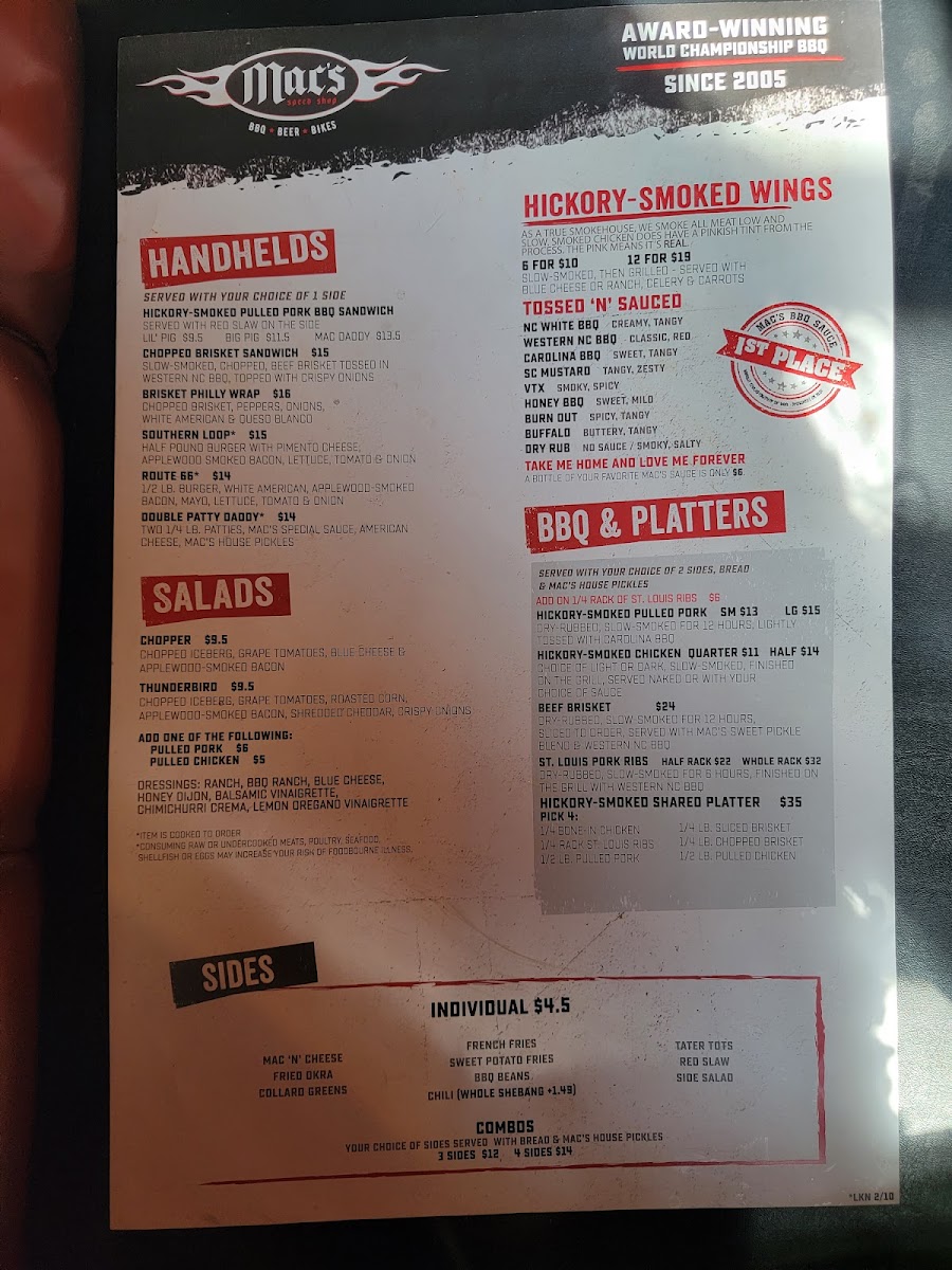 Mac's Speed Shop Menu (2025 Update)